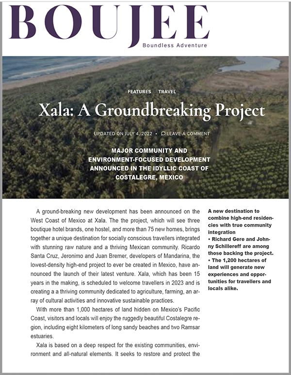 ”Transforming an untouched gem on Mexico’s Pacific Coast, the developers who crafted the acclaimed Mandarina resort have set their sights even higher with Xala, a monumental $1 billion project in Jalisco. Spanning 1,200 hectares in the picturesque Costalegre region, Xala aims to redefine luxury living with its blend of lavish hotels, around 100 estate-style holiday homes, and a dedicated international airport.”
