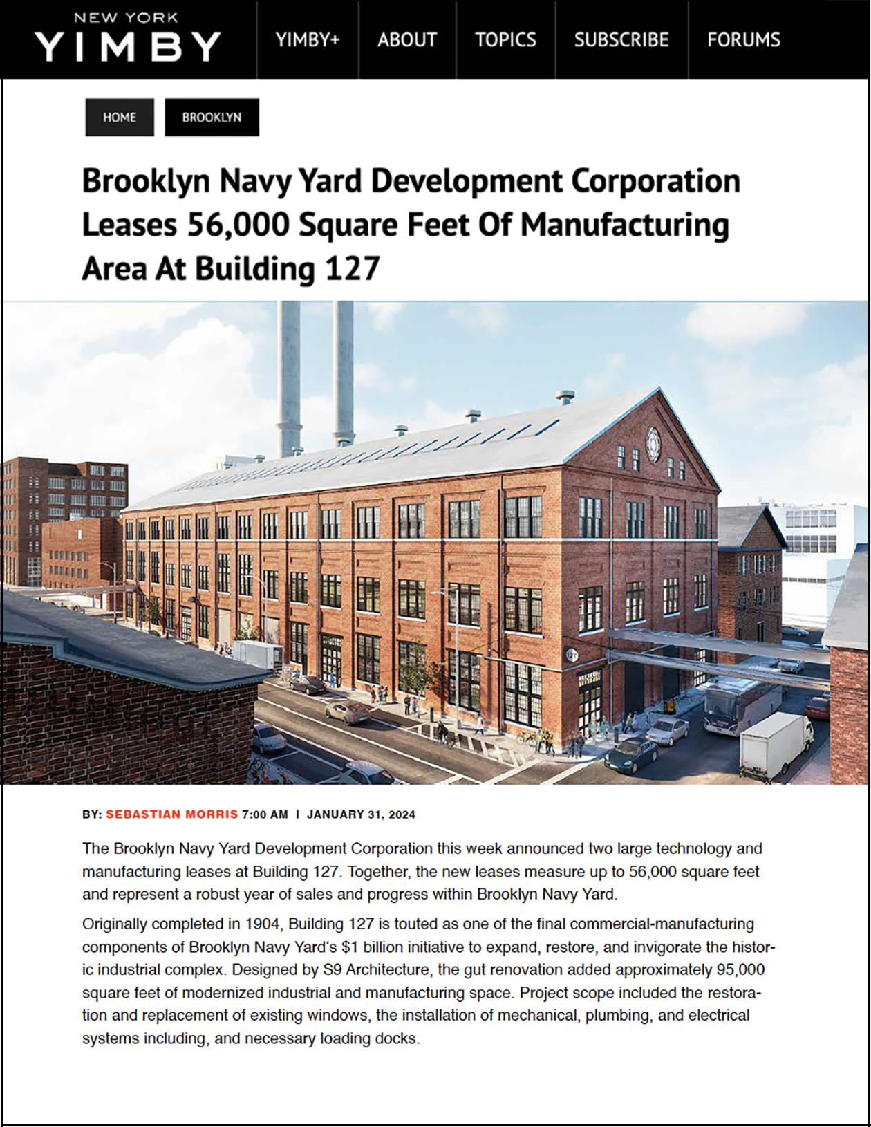 ”Hot on the heels of a new master plan that outlined the longterm future of the Brooklyn Navy Yard, the developers behind the onetime shipbuilding center’s transformation have announced the restoration of one of its historic structures. Building 127, located on Morris Avenue between Third and Fourth streets, will be renovated by S9 Architecture. The structure dates back to 1904, when it was used as a shipbuilding facility, and it was most recently the home of the Cumberland Packing Corp., best known as the manufacturer of Sweet’N Low. The company moved out of the facility in 2017, citing competitive pressure as the reason for the closure.”