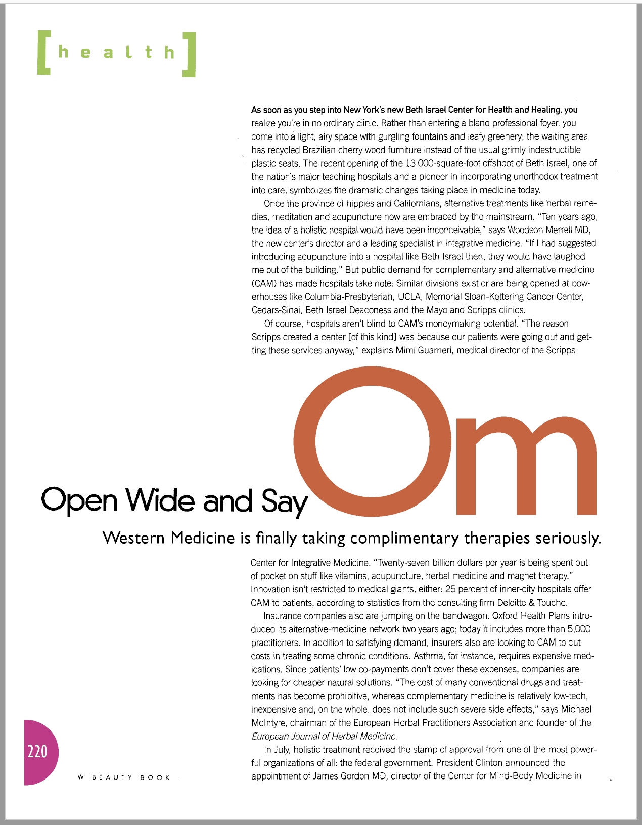 “As soon as you step into New York’s Beth Israel Center for Health and Healing, you realize you’re in no ordinary clinic.”