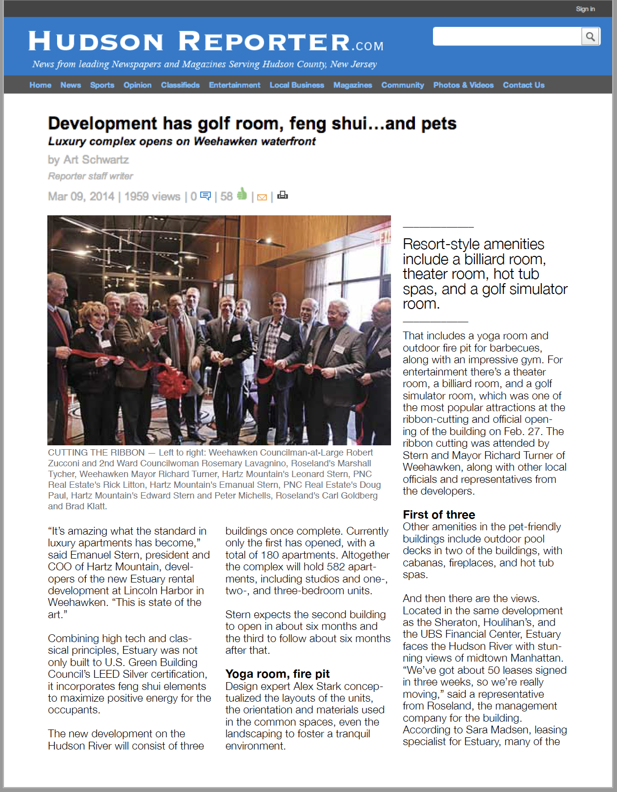”Kenneth Fishel, president of New York-based Renaissance Properties, said the Chinese practice of arranging objects and spaces to create harmony and balance was a key part of 1515 Boca’s $5 million renovation. It’s also a big reason why 64,000 square feet of lease deals were closed in the past year, he added. Advising the renovation was Alex Stark, a Feng Shui consultant and graduate of the Yale University School of Architecture. Through Stark's guidance, Feng Shui was applied on how the buildings lobby, common areas, and office interiors were designed, including the selection and paint colors and position of his furniture. Geomancy was also used on how objects were placed…in relation to doors and windows to enhance natural light.”