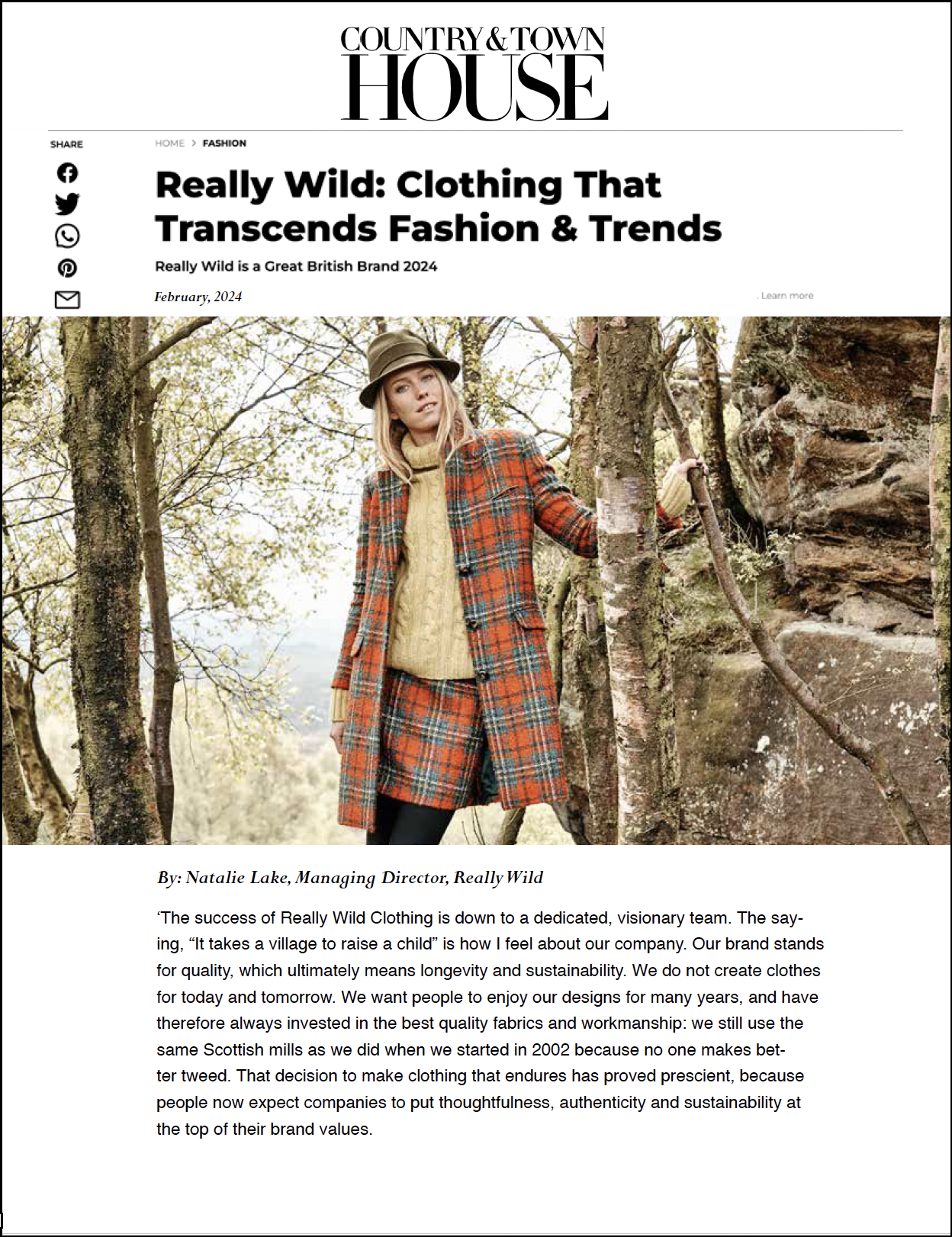 ”We want people to enjoy our designs for many years, and have therefore always invested in the best quality fabrics and workmanship: we still use the same Scottish mills as we did when we started in 2002 because no one makes bet-