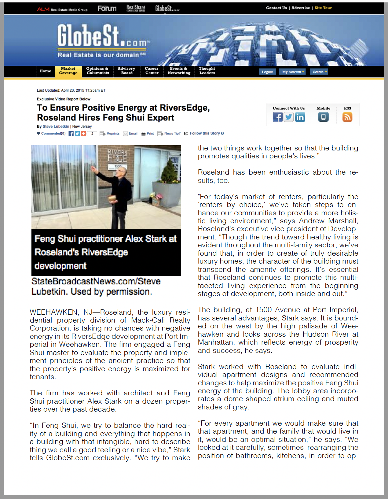 “Alex Stark, who is a graduate of the Yale University School of Architecture and worked as an architect for 20 years before starting his feng shui practice, says he worked with New York City-based architectural teams, advising them on what errors and problems to avoid.”